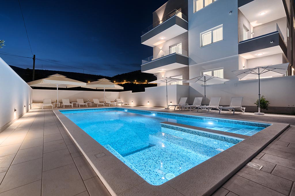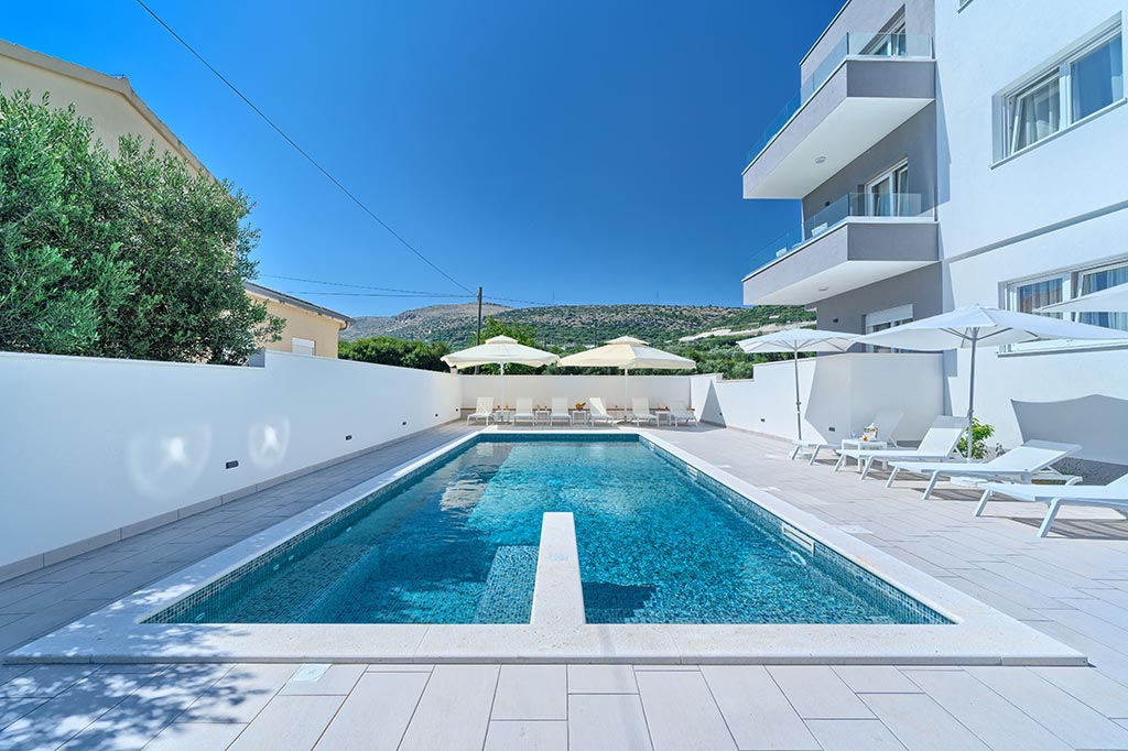 Villa Dvori je novoizgrađena villa smještena u gradu Trogiru udaljena svega 2km od samog centra. Njena lokacija nije samo pogodna za istraživanje starog dijela grada Trogira već je izvrsna polazna točka za sve izlete u regiji, od posjeta najljepšim mediteranskim gradovima i susjednim otocima do izleta u najpopularnije nacionalne parkove Hrvatske.